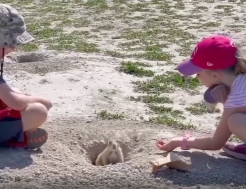 This sneaky gopher had a plan to outsmart the two kids trying to coax him with a snack.