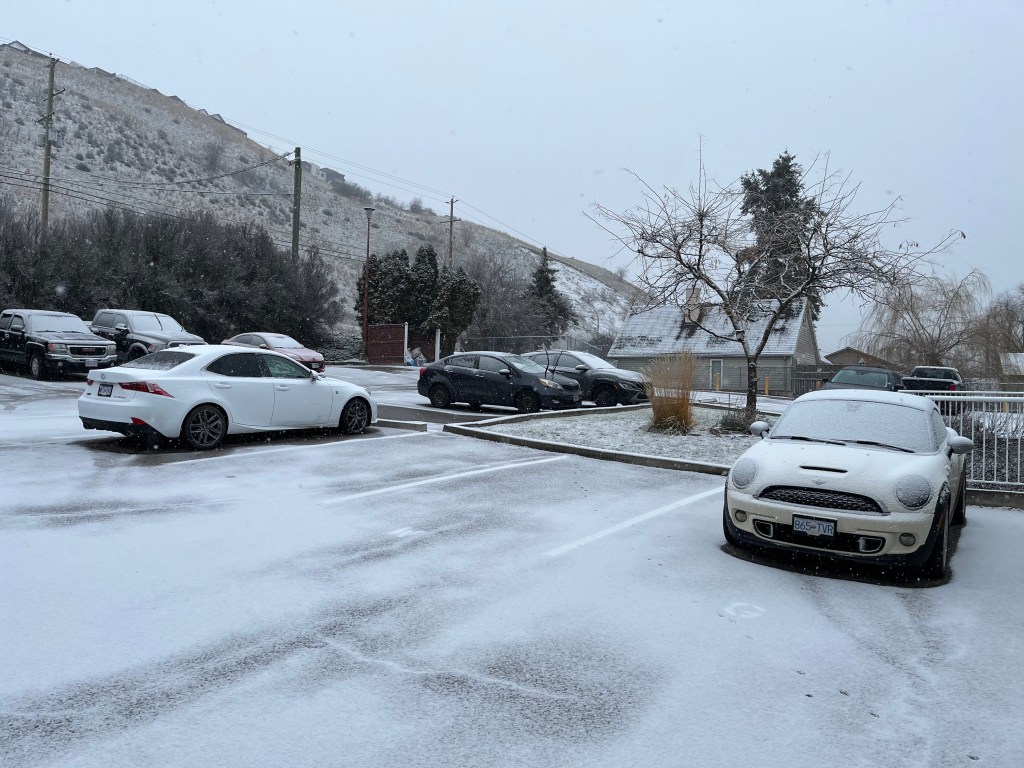 Kamloops and the Okanagan are expecting up to four centimetres of snow today, Dec. 16, but it might not stick around due to milder temperatures forecast later this week.