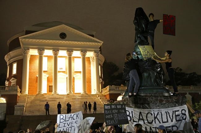CHARLOTTESVILLE, Va. – Protesters who draped a black shroud over a statue of Thomas Jefferson at the University of Virginia were “desecrating” ground many people consider “sacred,” the president of the Charlottesville college said Wednesday.