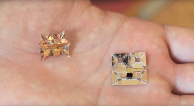 Self-folding printable robots are built out of layered sheets of material, which are laminated together and cut with a laser, Demaine explained. He said the internal layers often consist of electronics and a structural material like paper, which are sandwiched between the same plastic material used in the children’s toy Shrinky Dinks.