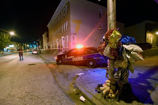 BALTIMORE – Three gunmen shot and wounded eight people including a 3-year-old girl on an east Baltimore street Saturday night, police said, adding the suspects fled and the victims were all expected to survive.