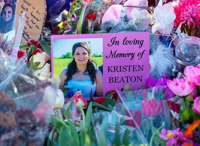 On Sunday, a framed photo of the 49-year-old mother of two could be seen on a table next to a grey urn and bouquets of flowers during her funeral in Truro, N.S. The service was also available online for those who could not attend due to the COVID-19 pandemic.