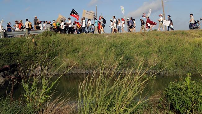 MISSION, Texas – Hundreds of protesters wearing white and chanting in English and Spanish marched Saturday in Texas’ first major protest against a border wall, crossing the earthen Rio Grande levee where President Donald Trump’s administration wants to build part of the first phase.