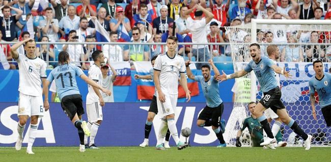 Uruguay took a 2-0 lead over Russia on an own-goal — the sixth of the World Cup to tie the tournament record. Midfielder Diego Laxalt’s shot from long range deflected off Denis Cheryshev’s foot and past goalkeeper Igor Akinfeev.