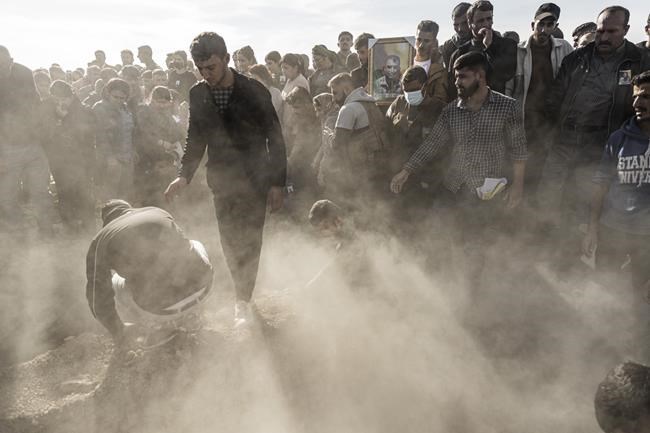 Kurdish-led Syrian Democratic Forces later said fresh Turkish airstrikes on Tuesday struck a base the group shares with the U.S.-led coalition in the fight against the Islamic State group. The base is just outside the town of Qamishli, 50 kilometers (30 miles) from the Turkish border. Two SDF fighters were killed and three were wounded, the group said.