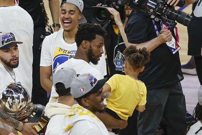 SAN FRANCISCO (AP) — Andrew Wiggins hoisted his daughter Amyah into his arms and beamed as the Warriors were crowned Western Conference champions.