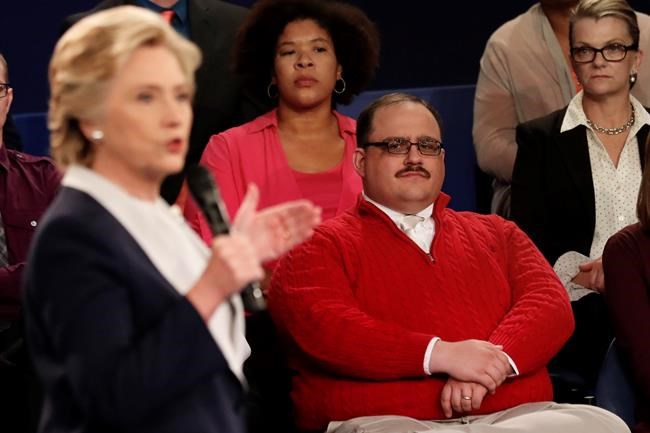 Bone also gained thousands of Twitter followers in the hours after the debate. Some Twitter users have saluted him with edited photos. One takes after the iconic “HOPE” poster from President Barack Obama’s 2008 run. GQ magazine has gotten in on the fun by posting a “Ken Bone Halloween costume kit ,” which includes a red sweater, glasses, a fake moustache and a microphone.