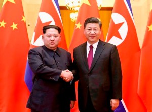 In a photo released by the German Federal Government, German Chancellor Angela Merkel stands surrounded by other leaders as she peers down at President Donald Trump, who is seated with his arms crossed and returns her gaze.
