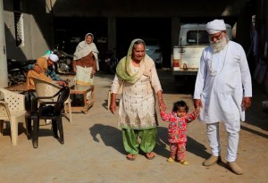The 15-month-old toddles about the sprawling courtyard of her parents’ farm, her oily curls tied up in a top knot, her rubber-soled shoes squeaking. Kaur’s eyes don’t miss a thing, and they often mist up with tears.