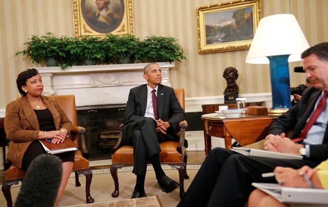 Obama met with Attorney General Loretta Lynch, FBI Director James Comey and Homeland Security Secretary Jeh Johnson in the Oval Office. He addressed reporters for about five minutes after the meeting without taking questions. He said the federal government has many of the tools necessary to help local departments, but the effort to improve policing will also have to be driven within those departments.