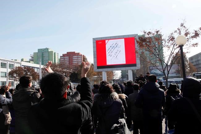 After the launch, it said leader Kim Jong Un “declared with pride” that his country has achieved its goal of becoming a “rocket power.” State TV said Kim gave the order Tuesday, and it broadcast a photo of Kim’s signed order where he wrote: “Test launch is approved. Taking place at the daybreak of Nov. 29! Fire with courage for the party and country!”