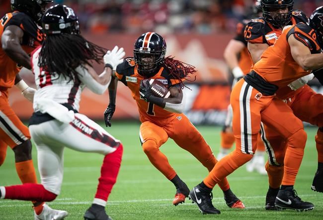NOTES: Lions defensive back Victor Gamboa suffered an arm injury in the second quarter and did not return … Complimentary cowbells were given to the limited-capacity crowd of 12,552 at B.C. Place as part of a half-time tribute to front-line and health-care workers.