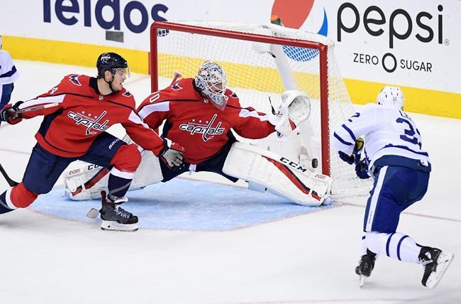 Toronto had several chances to tie in the first. Holtby made big saves on Zach Hyman and Kapanen, both alone in front, and the Maple Leafs hit the post twice.