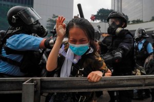 The woman, who appeared to be the owner of the dog, was described as Caucasian with blonde hair and wearing a blue shirt.