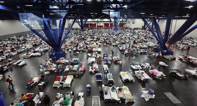 The major shelter for several days was the George R. Brown Convention Center in downtown Houston. Originally setting a capacity of 5,000 people, the Red Cross ended up with double that number in three days. It ran out of cots. Some people slept on strips of cardboard or the floor until more cots arrived. Others said they were not getting enough food.
