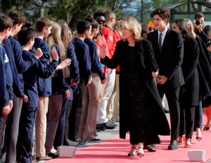 Parisians lined the streets outside Macron’s campaign headquarters to see his motorcade whisk him away to the Louvre party. His wife, Brigitte, joined him on stage after his address.