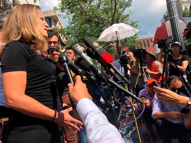 Freeland reiterated her view Thursday that the fate of those tariffs was separate from the NAFTA talks, and she urged the administration to lift the “unjustified and illegal” action.