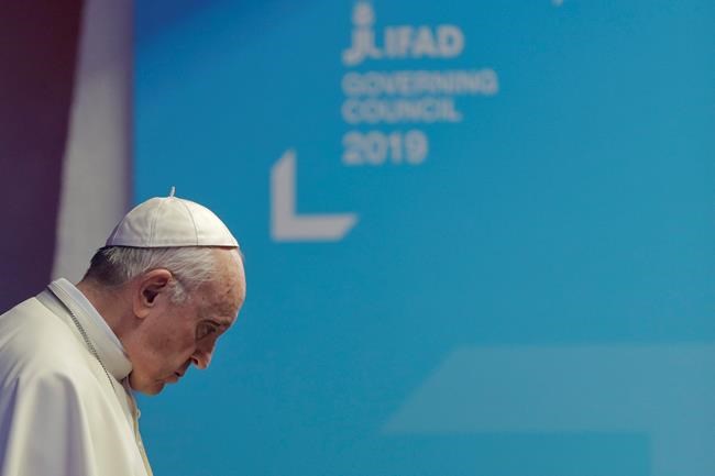 Francis was addressing an annual session Thursday of the International Fund for Agricultural Development, a U.N. agency based in Rome dedicated to eradicating poverty and hunger in rural areas of the developing world.