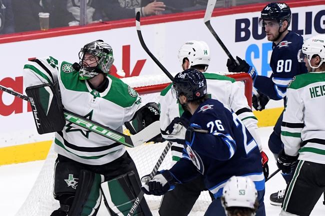 Connor Hellebuyck made 22 saves for Winnipeg (8-3-1), which is on a seven-game point streak (6-0-1) and tops the NHL Central Division over the Stars.
