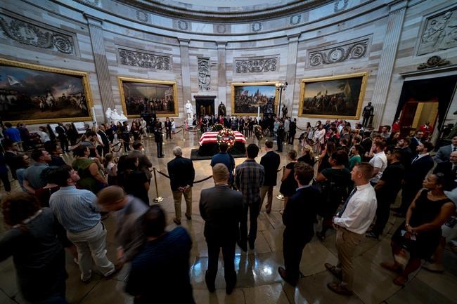 McCain’s 106-year-old mother attended the Capitol ceremony honouring her son, although that caused one awkward moment for CNN. The network misidentified another woman in a wheelchair as her and later had to apologize.