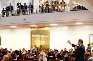 TORONTO – Better-than-expected economic data lifted the loonie Friday while North American markets slipped into the red after a day of mostly listless trading.