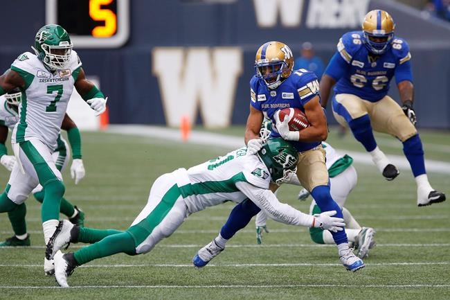 Collaros was 13-for-24 for 173 yards with one interception that Bombers defensive back Anthony Gaitor ran 55 yards for a TD. A sack of Collaros and a fumble led to a nine-yard TD catch by Bombers rookie receiver Daniel Petermann at 4:40 of the fourth quarter that cut Saskatchewan’s lead to 26-24.