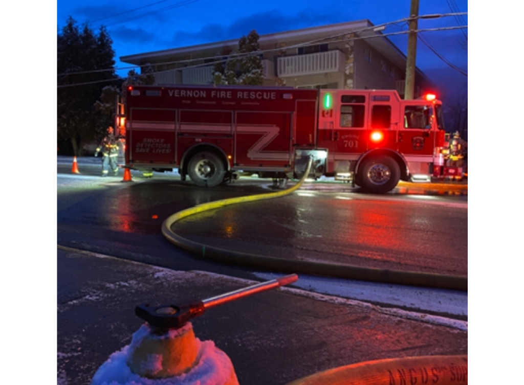 A City of Vernon media release says several suites at in the building in the 3600 block of 30 Avenue sustained fire, smoke and water damage during the fire that was discovered about 7 a.m., Jan. 3.