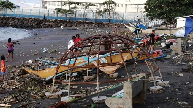 Typhoon Phanfone stranded many people in sea and airports at the peak of holiday travel, set off landslides, flooded low-lying villages, destroyed houses, downed trees and electrical poles and knocked out power in entire provinces. One disaster response officer described the battered coastal town of Batad in Iloilo province as a “ghost town” on Christmas Day.