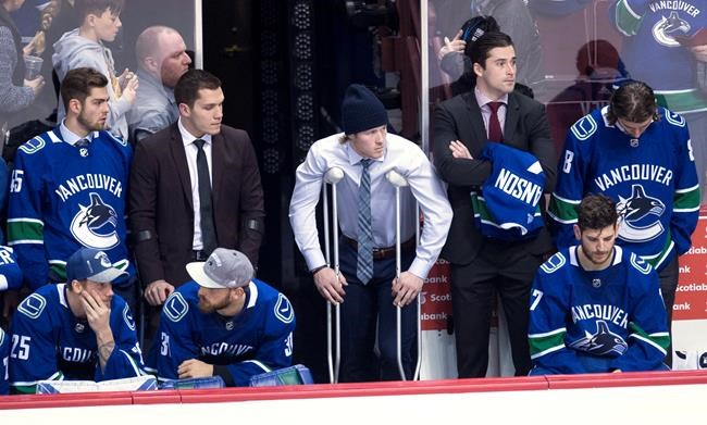 The Canucks were already missing the other two thirds of their top line with Bo Horvat (fractured foot) and Sven Baertschi (broken jaw) on the shelf, while defencemen Christopher Tanev (groin strain) and Erik Gudbranson (upper body), as well as checking centre Brandon Sutter (upper body), are also currently on the sidelines.