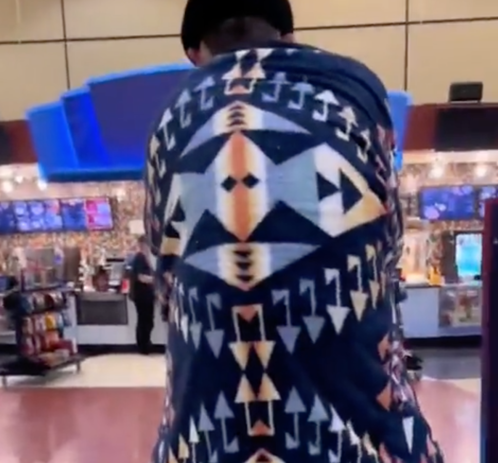 The best part is the shoes sticking out from under the blanket.