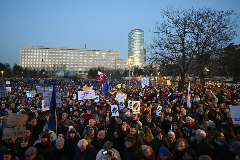 BRATISLAVA, Slovakia (AP) — Tens of thousands of people in Slovakia gathered at squares and street across the country on Friday to voice their opposition to the pro-Russia policies of populist Prime Minister Robert Fico.