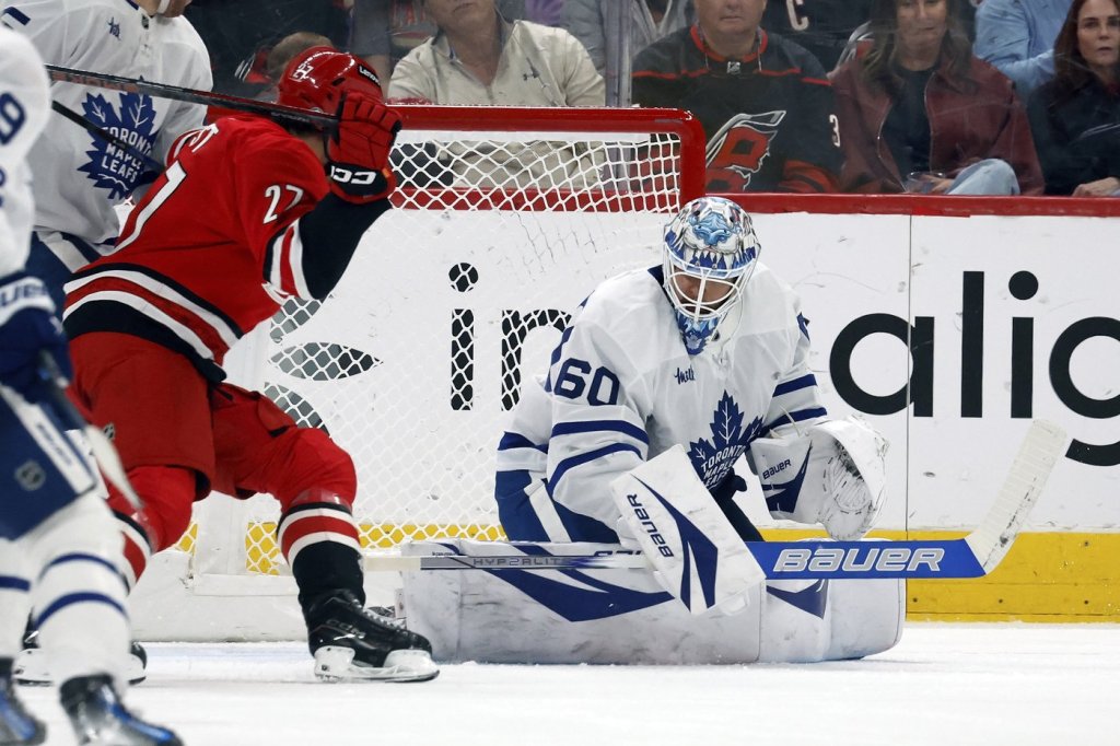 RALEIGH, N.C. (AP) — Joseph Woll made 25 saves and the Toronto Maple Leafs moved closer to clinching the Atlantic Division title by defeating the Carolina Hurricanes 4-1 on Sunday, reaching the 50-win mark.