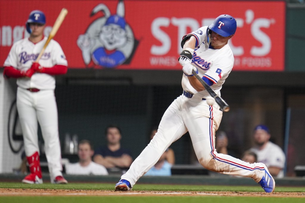 Texas goes for the series sweep on Thursday when right-hander Kumar Rocker (0-2, 7.94 ERA) faces Los Angeles right-hander Jack Kochanowicz (1-1, 5.74 ERA).