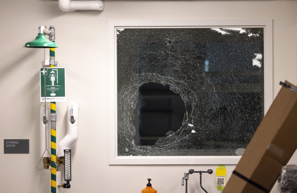 Damage is seen to a CNC machine inside of the Interdisciplinary Engineering Building on University of Washington’s campus after pro-Palestinian protesters occupied the space, Tuesday, May 6, 2025, in Seattle. (Nick Wagner/The Seattle Times via AP)