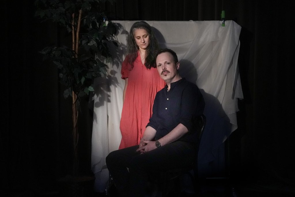 Michelle Monteith plays the journalist Lauren, whose doubts about her own memory have her turning to a male character, Luke, played by David Patrick Flemming, to recount her own story back to her. The audience plays witness to Lauren’s reaction to hearing someone else present details of her life, a twist on the unreliable narrator trope that raises questions about whose stories get told and whose voice gets heard.