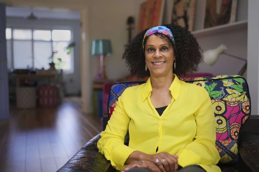Evaristo’s house on a quiet suburban street is bright and comfortable, with wooden floors, vibrant textiles and a large wooden writing desk by the front window. Large photos of her Nigerian paternal grandparents hang on one wall. Her work often draws on her roots as the London-born child of a Nigerian father and white British mother.