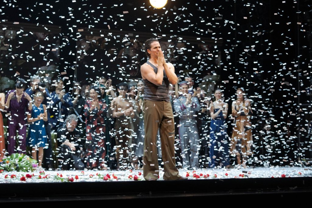 The celebrated principal dancer brought his palms to his heart and smiled as confetti and flowers rained onto the stage following a farewell show Thursday.