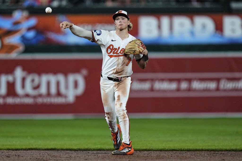 Ryan O’Hearn and top prospect Coby Mayo will split time at first base. The 23-year-old Mayo appeared in his ninth game of the season on Friday after playing in 17 games while making his big league debut a year ago.