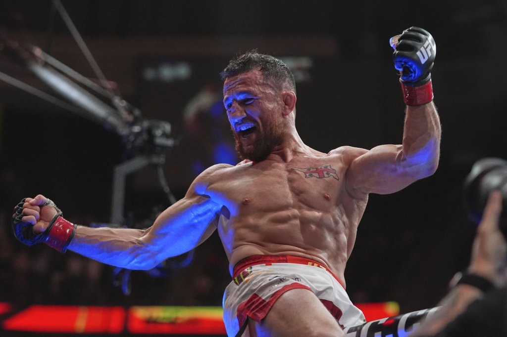 Dvalishvili — who had to duck a small railing collapse on his walk out that almost had fans spill onto the floor — ran his record to 20-4 and sat on top of the cage and bellowed toward the 17,343 fans in the start of an exuberant celebration of his 13th straight MMA victory, tied for fourth longest in UFC history.