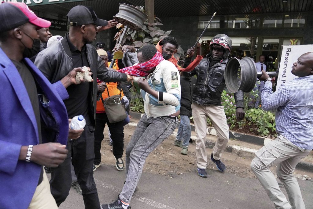 Tuesday’s protests turned violent after motorcycle riders accosted protesters and passersby, snatching phones and bags. Protesters set a motorcycle ablaze, and several riders and protesters were injured.