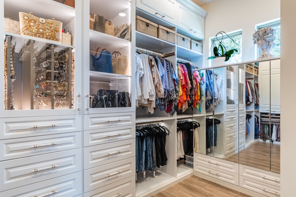 Bret Bresciani, the owner of The Tailored Closet in Vernon, outlined for us the top reasons why the pros at The Tailored Closet can help. “We are a one-stop shop for in-home storage solutions, and our team can solve complex issues in every area of the home,” Bret explains. The Tailored Closet has designers, carpenters, and a team to order the add-in products (such as rods, glass inserts, hooks, and shelving) to expand storage areas, backed by years of expertise.