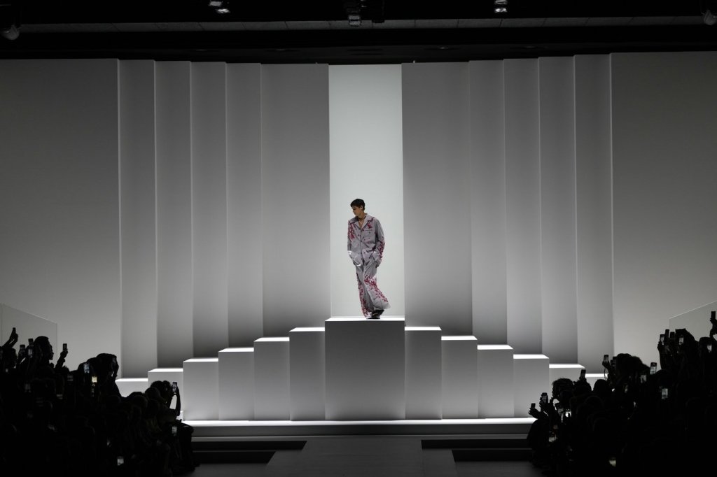 A model wears a creation as part of the men’s Dolce & Gabbana Spring-Summer 2026 collection, that was presented in Milan, Italy, Saturday, June 21, 2025. (AP Photo/Luca Bruno)