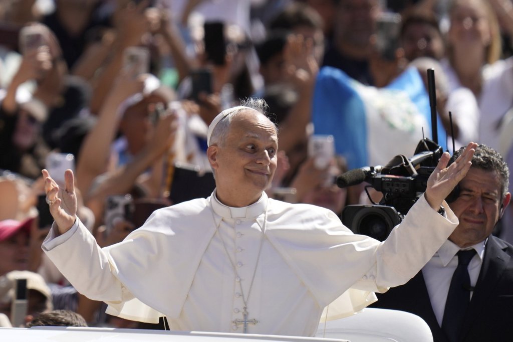 History’s first American pope spoke in Italian, but he switched to English to address a group of Ukrainian children, some of whom held up Ukrainian flags and snagged Leo autographs. He spoke about the benefits of meeting people from different backgrounds, languages and lands.
