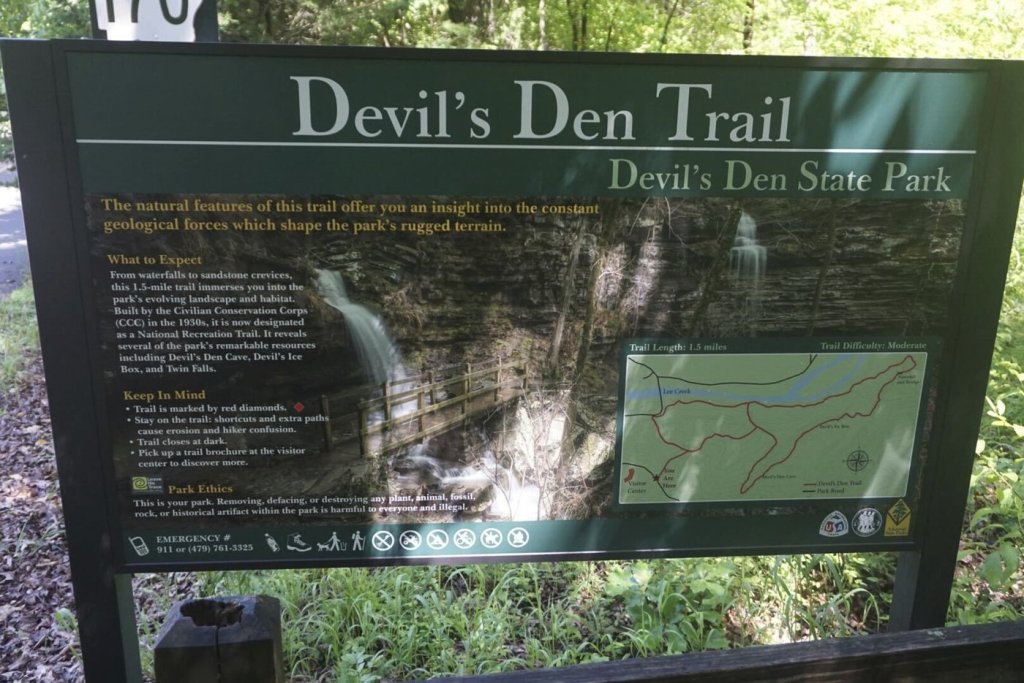 Devil’s Den is a 2,500-acre (1,000-hectare) state park near West Fork, about 140 miles (220 kilometers) northwest of Little Rock, the state capital.