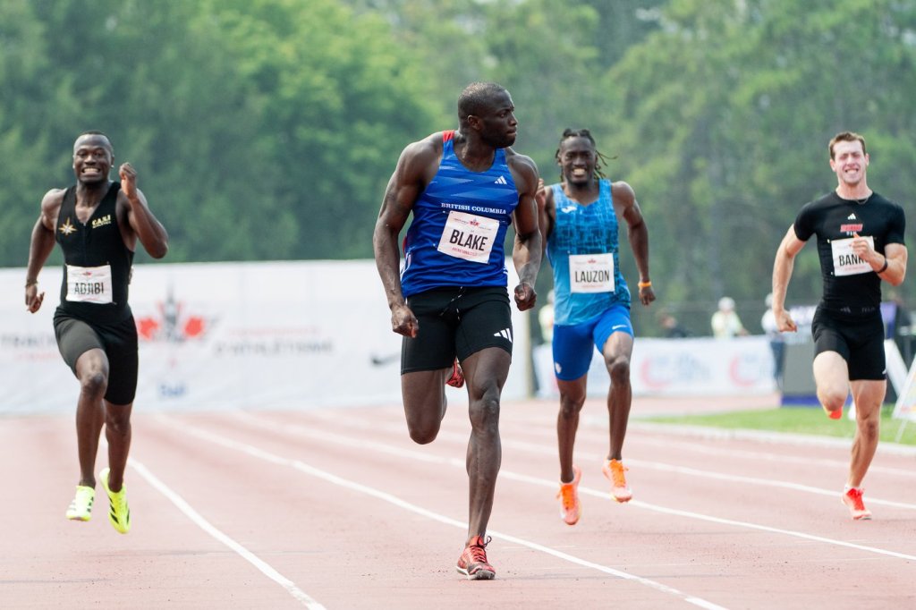 Toronto’s Aaron Brown (20.08), also a teammate of Blake’s on the relay team, and Ottawa’s Eliezer Adjibi (20.60) finished second and third, respectively.