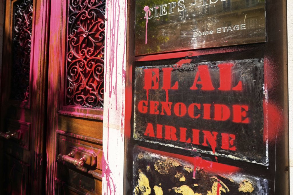 PARIS (AP) — The Israeli airline El Al said Thursday that its Paris office was vandalized with anti-Israel graffiti, calling the act a “deeply disturbing” incident as tensions between France and Israel run high.