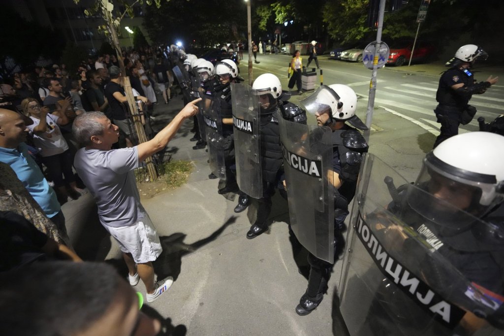 Dacic, the interior minister, accused the protesters of attacking governing party loyalists. He said “those who broke the law will be identified and sanctioned.”