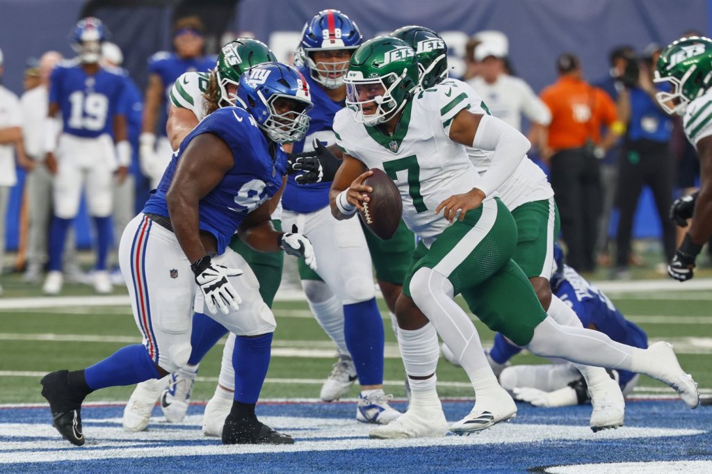 Fields, signed to a two-year, $40 million deal in the offseason to replace Aaron Rodgers as the Jets’ starting quarterback, went just 1 of 5 for 4 yards in two series in their 31-12 preseason loss to the Giants as the starting offense mostly stuck to the ground Saturday night.
