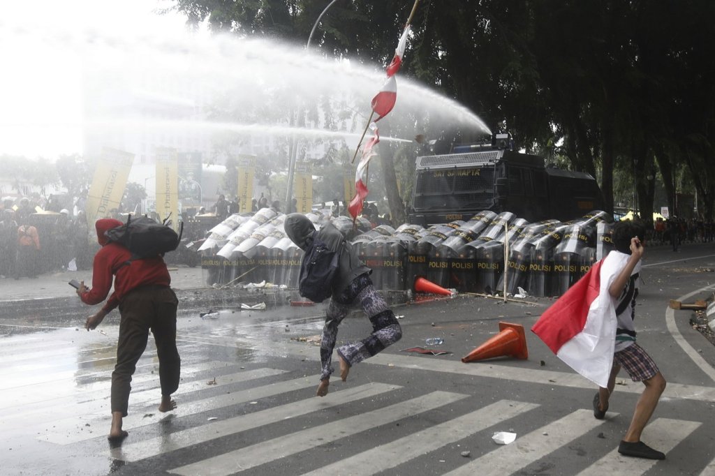 Protesters marched to the headquarters of the police mobile brigade in the capital Jakarta on Friday, and some attempted to storm the compound. Police used water canons and fired rounds of tear gas to push back the demonstrators, who hurled bottles, rocks and flares at them.