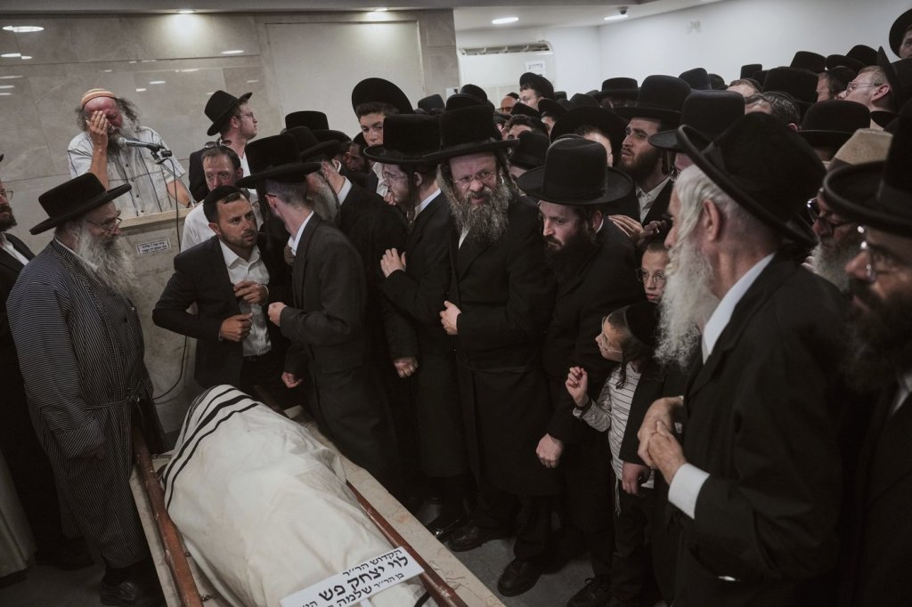 Mourners attend the funeral of Levi Yitzhak Pash, who was killed along with five other Israelis in a shooting attack by two Palestinian gunmen at a bus stop in Jerusalem Monday, Sept. 8, 2025. (AP Photo/Ariel Schalit)